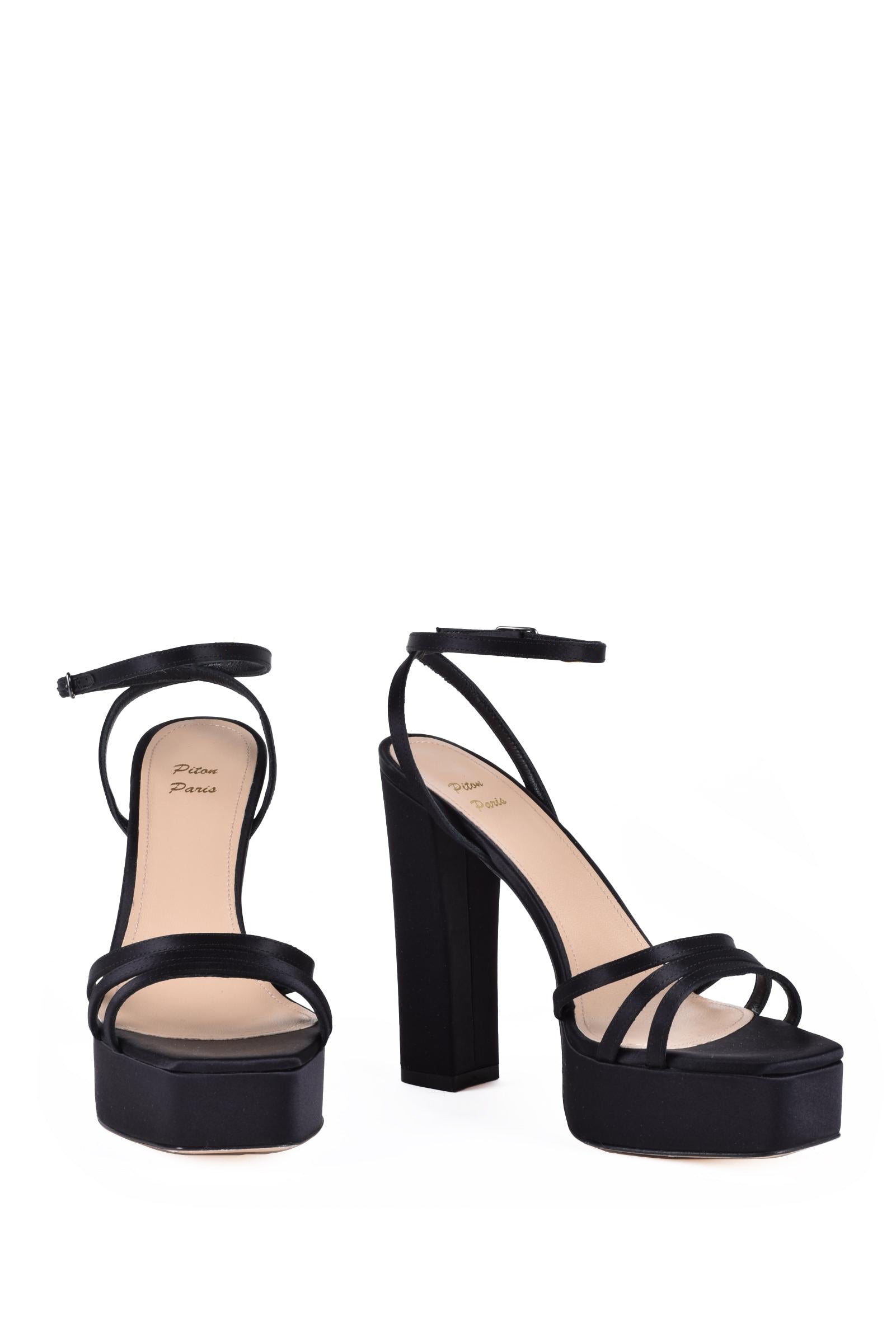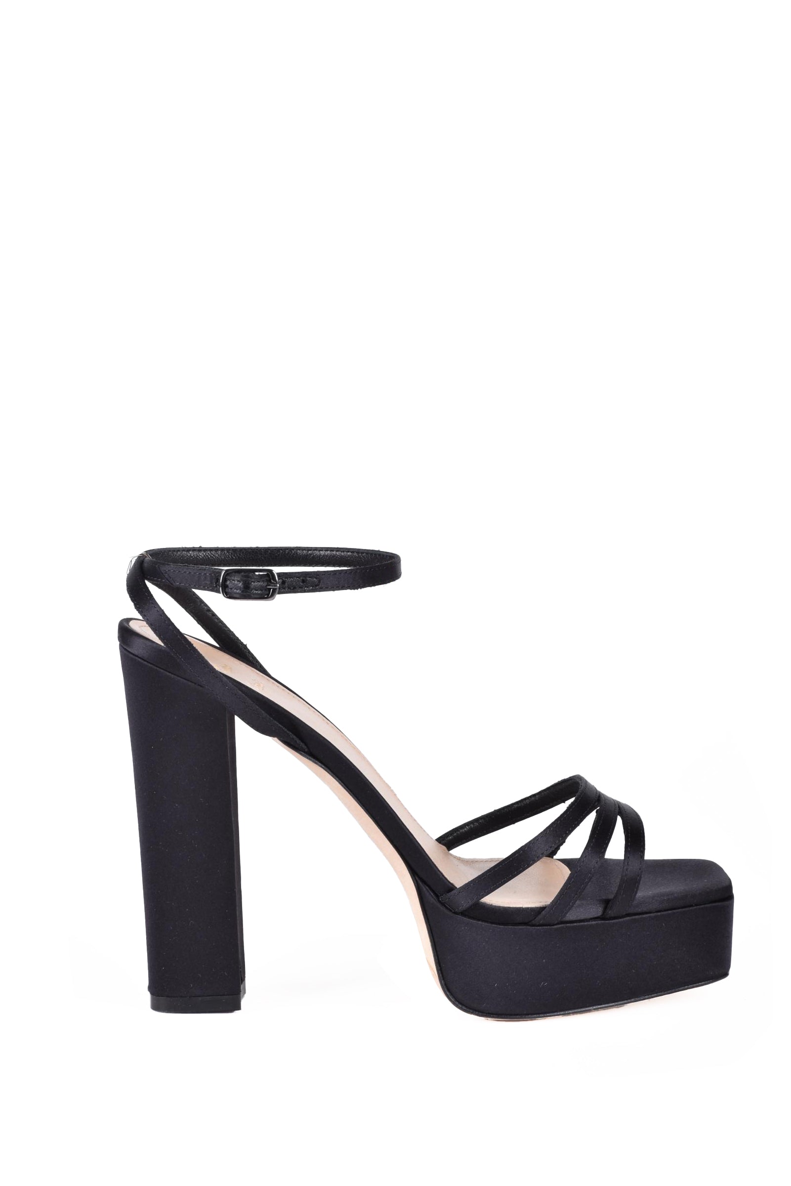MODELLO: Sandalo In Raso, ALTEZZA TACCO: 13 Cm, PLATEAU: 3 Cm, SUOLA: Cuoio, CHIUSURA: Cinturino